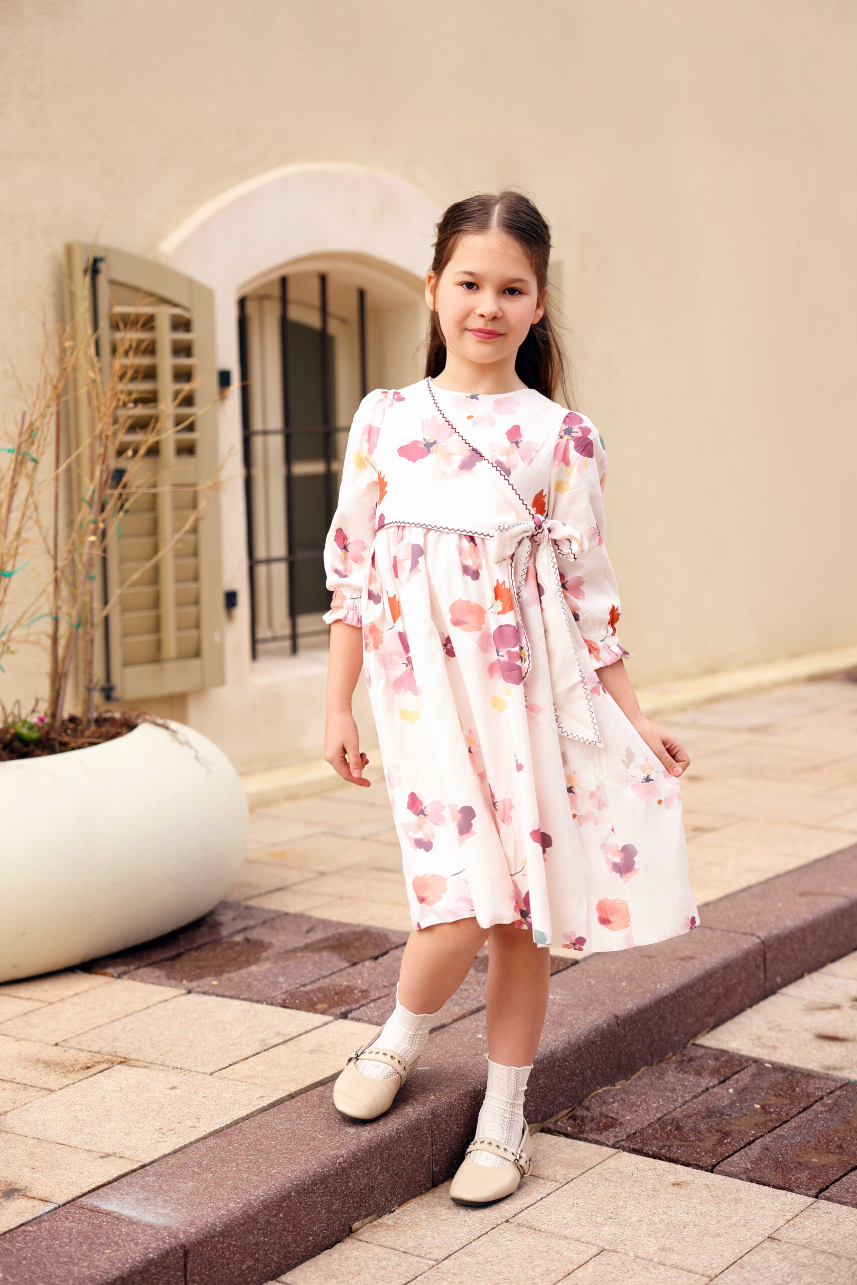 שמלת מעטפת בגזרה שיקית, עם קשירה אלגנטית בסיומת רקמת זיגזג ייחודית שמוסיפה טאץ' מלא אופי.